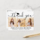 Skicka ett tacksamhetsmeddelande med anpassningsbar 3-fotokollage, svart och vitt studenten-tack som du postkort för. Alla bilder och formuleringar är enkla att anpassa. (IMAGE PLACEMENT TIP: Ett enkelt sätt att centrera ett foto exakt som du vill är att flytta det till skörd innan du laddar upp det till Zazzle-webbplatsen.) Den här mallen kan anpassas med valfri ordalydelse, t.ex. framtida utbildningsplaner, nya befattningar eller favoritinspirationstecken. Om du föredrar att lämna skriva till ditt meddelande tar du bara bort exempeltexten eller användan extra ovanför ny adress- och kontaktinformationen. Utformningen har ett svart pantartonshölje, handskriven kalligrafi av stil-skript, modern minimalistisk typografi och tre foton som du själv väljer, t.ex. äldre bilder eller bilder från startceremonin. Dessa kort för personlig i elegant är ett trendig- och chic sätt att tacka familj och vänner för att de har delat med sig av studenten firande. Grattisar till student!