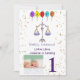 En imponerande målning av Libra Zodiac-tecknet i blekens blå lila och mörkens lila skuggas med guld-nuggetter. De är söta party-ballonger som stavar "Lycklig" på överkanten och guld konetti som visas slumpmässigt på kortet. Anpassa framkortet med bild. Kortets baksida har samma intsionistiska målningsbakgrund med kornblomsblå, vit gräns och mörkens lila. En elegant med vita pärlor och guld-nuggar ge är en fin presentation av inbjudan. Texten framför kortet är skriven i mörk lila färg. Texten längst bak på kortet är skriven i vit färg. Du kan ändra texten färg med Zazzle verktyg.