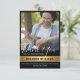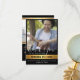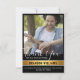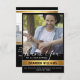 Modern studenten tackar dig för ett fotokort som är perfekt att skicka eller lämna ut till vänner och familj som har visat dig kärlek och stöd under resan i studenter. Ett foto av student på framsidan på ett trendig med svart bakgrund som kan ändras till vilken färg som helst, vit kalligrafiktext "Tack", deras namn, ställe i studie- och klassår. På baksidan finns en andra bild i graden och en enkel "tack"-meddelandemall som är enkel att anpassa.