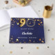 Atrendy navy blue, uneven färgad bakgrund med faux guld-stjärnor. Lägg till namn och text. Åldersnumret skrivs med ett stil-teckensnitt för ballong. Rygg: lägg till texten.