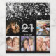 För en 21:a (eller vilken ålder som helst) födelsedagsfest firar du hennes liv med fem av dina egna foton. Anpassa och lägg till namn, 21 år och ett datum. Födelsedatum eller datum för party. Vitt och grått färgad brev. Klassisk svart bakgrund färg, dekorerad med faux silver glitter damm