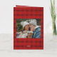 Trendig och ett modernt Julhälsningar kort med framsidan av ett lodrät i fullt med "God jul" i ett vitt, handskrivet skriptöverlägg. Anpassa framsidan av det enkla kortet genom att lägga till ditt namn och året. Insidan av det vikta helgdag har en färgad röd bakgrund på den lämnat med ditt anpassningsbar-meddelande på högerna. Kortets baksida innehåller ytterligare ett foto.