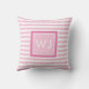 Elegant modern rosa och vit randig kudde med monogram initialer. Lägg bara till ett foto av din lilla nyfödda för att skapa en vacker minnessak eller en trevlig tillägg till deras barnkammare. Designad av Thisisnotme©
