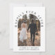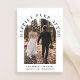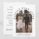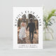 Elegant elopement eller privat bröllopsinbjudan och mottagningsinbjudan. Framsidan visar er bröllopsdagsfoto i en välvd ram och "Lyckliga för evigt" i elegant typografi. Lägg till era förnamn, bröllopsdatum och plats. På baksidan kan ni anpassa er bröllopsinbjudan och mottagningsdetaljer och lägga till era namn i ett signaturliknande manus.