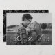 Meddela dina kommande påhopp i stil med vårt vita kalligrafiskript spara datumkorten. Eleganten sparar datumet visningen på vågräts förlovning med "Spara datum" i ett vitt kalligrafiskt skript. Anpassa fotots framsida genom att spara datumet genom att lägga till namn, bröllop-datum och stad/stat. Kortet återgår till visning av ett vitt blad mönster med en svart bakgrund eller färg efter eget val.