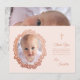 Foto på dop av rosa flicka i roséguld blomsterkran tack kort
