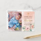 Elegant dop fototack kort.. Design med akvarell persika, rosa bakgrund och guld geometrisk oval ram och blomsterarrangemang på framsidan med guldkors och Dop i guld folie skrift. Lägg till mer information på baksidan av vykortet. För att redigera denna mall, klicka på anpassa ytterligare.