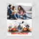 Ett hemligt vykort som innehåller en pumpa, en häxa och familjens foto. Det här pookyvykortet visar en hemsökt husscen, komplett med en festlig pumpa och en förhäxande häxa. Familjens foto är inbyggt i designen och tillför en personlig beröring till Halloween hälsning.