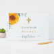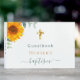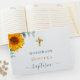 För elegantens baptism, könsneutral. En vit chic bakgrund. Dekorerad med en vattenfärgad solros och grönt eucalyptus löv, sprig, grönsak, faux guld löv. En faux guld kor. Anpassa och lägg till namn om barnet och ett datum. Grönt och brev. Rygg: lägg till din egen text: Bakåt: Lägg till ditt eget foto på baksidan, namn och födelsedatum.