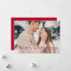Ett enkelt helgdag-kort med fullt-utfallsfoto med "God jul" som visas med elegantens röda bokstäver. Anpassa elegantens jullkort med din familj namn och året. Kortet återgår till visningen med en röd bakgrund med subtila vita prickar.