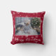 Festive Red Snöflingor God jul Photo Dekorativ kudde. Anpassa den här julklappen med din helgdag och bild. Designen har vitt snöflingor i olika former och storlekar på röd bakgrund. Kudden är underbar som en personlig julklapp till din familj eller dina vänner.