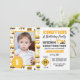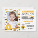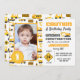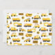 Cute building lastbilar mönster fotot födelsedagsfest inbjudan. Vit gult och grått färg med fordon, försiktighet och byggkonen mönster mot vit bakgrund. Anpassa texten och fotot!