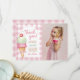 Tackkort för födelsedagsfest med rosa rosett och rutor glass tema