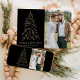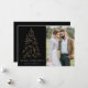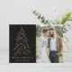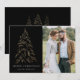 Modern helgdag- och elegant-kort med ett foto som kompletterats med en snöfaux-folie från guld i gräs träd med en svart bakgrund (eller färg efter eget val). "God jul" visas i ett vitt, modernt serif-teckensnitt med namnet eller anpassningsbarna nedan. Fotokortet återgår till visning tre gyllene gräs träd med anpassningsbarna nedan i vit helgdag. Den här designen är perfekt till använda som ditt kort för familjejul eller helgdag för företag/företag.