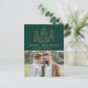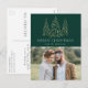 Modern vykort för helgdag och elegant med ditt foto kompletterat med en snöfaux-folie för guld i gräs träd med grönt (eller färg efter eget val). "God jul" visas i ett vitt, modernt serif-teckensnitt med namnet eller anpassningsbarna nedan. Fotovykortet återgår till visning av returadressen och anpassningsbarna.