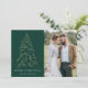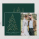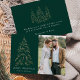 Modern helgdag- och elegant-kort som innehåller ditt foto kompletterat med en snöfaux-folie från guld i gräs träd med grönt (eller färg efter eget val). "God jul" visas i ett vitt, modernt serif-teckensnitt med namnet eller anpassningsbarna nedan. Fotokortet återgår till visning tre gyllene gräs träd med anpassningsbarna nedan i vit helgdag. Den här designen är perfekt till använda som ditt kort för familjejul eller helgdag för företag/företag.