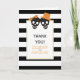 Elegant svart och vitt rand och ett par av döskallar är inslag på det här fotnotskortet för bröllop Tack. Din text är i ett vitt ram. Skallparet är av svart färg och brudgummen har en orange hatt och bruden en båge.