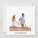 Elegant bröllop sparar datumet för inbjudan med en vattenfärgsblomkrans av dahlier, trädgårdsodling ro och peony i burgundrött, maron, rosa över höst löv med ett foto på baksidan. Om du vill ha en mer avancerad anpassning av den här designen klickar du på BLUE DESIGN VERKTYG. Matchande objekt är också tillgängliga.