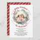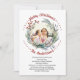 Julkortet visar upp en andedräkt av grenar som är försedd med gröna och röda bär. I mitten ramas ett familjefoto in, med "God jul" elegant skrivet ovanför det och familjen namn placeras nedan. De vackra röda prickarna framhäver båda fraserna. Den nedre delen av kortet innehåller ett varmt meddelande i svart bläck. På baksidan trycks ett diagonalt mönster av "God jul" i vitt mot en röd rik.