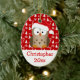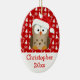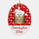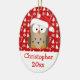 Lägg till fotot på baksidan. Lägg till barnen namn och år, på den här personligen är barnens julprydnad med en söt tecknad uggla med röd tomhatt på, den här söta lilla killen är redot att ha lite roligt av djurfåglar. En tecknad brun uggla med röd och vit hatt och en röd och vit helgdag mönster för upphetsningsmassor.