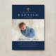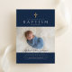 Personlig Modern Navy Blue Religiösa Kor Boy Baptism Fotoinbjudan.