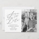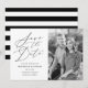 Lägg märke till ditt kommande bröllop i stil med vårt sparande datumen av minimal calligrafi. På framsidan av svartvitt sparas datumkorten i orden "Spara datum" i ett elegant-kalligrafiskt skript med namn, bröllop datum, plats och förlovning. Baksidan av sparar datumet svart och vitt rand.