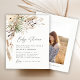 Budgeterad babyduschpampasgräs och eukalyptus modern boho elegant snyggt foto party designinbjudan. I en contemporary terracotta, sage grönt, naturlig, gräddvit och svart färgväg.