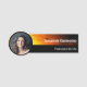 Den här professionellen namn bricka har en vit namn på solnedtonad bildbakgrund och nedanför titeln i vitt över en svart bakgrund med ett mallfoto. Anpassa fält eller klicka på Anpassa för att välja det teckensnitt stil, storleka och färg som du vill använda. Byt ut fotot mot ditt. Ett fyrkantigt foto fungerar bäst.