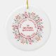 Denna vackra keramiska prydnad är perfekten till minne av familjens första jul som morföräldrar! Med en festlig utformning med ett foto av baby i ett ram som är gjort av bär och löv, dekoreras den med texten "VÅR FÖRSTA CHRISTMAS AS GRANDPARENTS. 20XX" i en vacker röd nyans. På utsmyckningens baksida kommer samma blommigt ram och er text att tas med, vilket skapar en perfekt som är viktig för att i åratal hålla fast vid träden vid kom. Denna unika och charmerande prydnad kommer att bli en meningsfull påminnelse om glädjen i er första jul som morföräldrar.