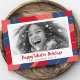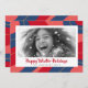 God jul-kort i rött, rosa och mörk blått med anpassningsbarnas foto och hälsning. Standardtext: Helgdagar för Lycklig Winter
