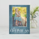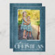 Ditt favoritfoto på en turkotisk blå väv mönster med namn och God jul hälsning på grund i chic. Välj Projektionsyta för tyngsta pappra och HD för bästa fotokvalitet.