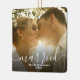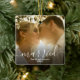 Lägg till foton från bröllop på fram- och baksidan, dubbla 2-sidig ornament.. Snyggt Loose and avslappnad script typography, your namn and year or other text. Modern skriptskrivning med enkel avslappnad elegant. Fira ditt första år som mr och mrs, gift med den vackra keepsaki-bröllop-presenten för brud och groom-ornament. Ladda upp fotot för att skapa en fullt-blek julprydnad, en underbar presentidé som nygifta, bröllopsfest eller andra vänner och familj.