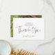 En minimalistisk textdesign med ett skript som anger snyggt för typografi på mörkaste bruna och resten av texten som du lätt kan anpassa. På baksidan byter du ut ditt favoritfoto från din speciella dag som minnesstund för dina gäster.