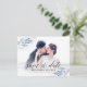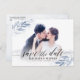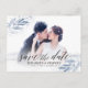 Modern Bröllop spara datum-foto-vykortsmallar - Vintage Blue Watercolor Lövs och handskript på Watercolor Stänk Background. En Perfekt för din stora dag. Alla textstorlekar i stil, färg, kan ändras för att passa dina behov!