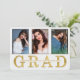 Meddela din pensionärs studenten, studentfest eller ceremoni i inbjudan med detta 3-foto-meddelande för graderande pensionärer, med en enkel och modern design med GRAD som är utskriven i faux guld löv utseende och information om din grad. Tack till Nastya Gepp för hennes vackra platshållarfoton.