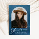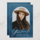 Elegant studenten-meddelande med student-foto inuti en båge ram med en marsch blå vattenfärgsbakgrund. "Student" visas i ett vitt, modernt kalligrafiskript med student namn, skolan och graderingsåret som visas nedan. Fotomeddelandet studenten återgår till visningen med en matchande vattenfärgsbakgrund med utrymme för ytterligare text och foton.