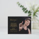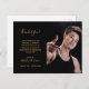 En elegant och ett modernt foto-studenten-tack. Bakgrund till svart färgad. Med texten: Tack! skriven i ett handskrivet skript i stil, gyllene brev. Mallar för foto av student, tackkort och namn, guldbrev.