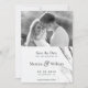 Ett modernt bröllop-foto sparar datumet med en vacker abstrakt svart och vit slitbana, kompletterad med mörk grått serif typsnitt. Kortets framsida kan anpassas med ett av dina favoritfoton (en svartvit effekt läggs till automatiskt), och omvänt kan vara personlig med brudgummens monogram. Det här Spara datumkortet är en del av vår samling "Svartvitt Bröllop", som innehåller matchning av delara för en komplett bröllop-svit. E-post till mig på acherryonthecake@hotmail.com om du behöver anpassa, justera färg eller matcha produkter (tillåt 1-2 arbetsdagar).