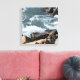 Denna vackra duk visar en klippig havsstrand med virvlande vitt vatten som sprutar mot klipporna.