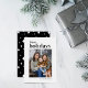 Vita och svarta Serif Glad helg Photo helgdag-kortet har en svart och vit gnistra stjärna mönster baksida. Anpassa den genom att ersätta platshållartexten och ersätta platshållarbilden med ett eget foto. Om du vill ha fler alternativ som att ändra teckensnittet och det är storlekt/färg eller mellanrummet mellan brev klickar du på knappen "Anpassa". *Observera att Zazzle Watermark som visas i zoomförhandsvisningen INTE visas på den färdiga tryckta produkten. © Rosewood and Citrus