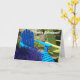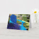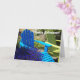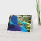 Ett attraktivt pension-kort med foto av två färgstarka Adirondack-stolar i en utomhusträdgård tillsammans med djupa blå Lobelia-blommor. Välj från projektionsyta eller glansigt stil-kort.