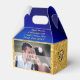 FOTO, Personliga presentaskar till bröllop, årsdag eller NÅGON ANLEDNING. Nyanser av kunglig och marinblå och vacker design med guldglitter med gyllene diamant-hjärtan pryder dessa bröllopsgåvoraskar. Lägg dina bröllopsgåvor i de fantastiska blå och gyllene presentaskarna för att förhöja dina bröllopsdekorationer. Designen på de personliga presentaskarna kan överföras till andra personliga bröllopsfirande tillbehör, dekorationer, gåvor och mer.