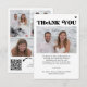 Avslappnad lustig bröllop-fetstil med ett modernt, minimalistiskt, svart och vitt tack med 4 foton, QR-kod till fotogalleriet, hjärtan och textmallen.