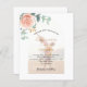 Dekorerad med en blommigt för guld och rosa, blomma från ro och grönt, vattenfärgad eukalyptus löv, spriter, grönsaks- och faux ro sprigs. Anpassa och lägg till information om foto, namn och bröllop. Vitt fotoöverlägg. Tillbaka: lägg till webbadressen för bröllop i QR-koden för mer information och/eller OSA. 1 lakan = 1 inbjudan till kant i kant.