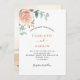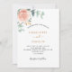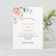 Dekorerad med en blommigt för guld och rosa, blomma från ro och grönt, vattenfärgad eukalyptus löv, spriter, grönsaks- och faux ro sprigs. Anpassa och lägg till information om namn och bröllop. Tillbaka: lägg till ditt foto, bröllop webbplats-URL:en till QR-koden för mer information och/eller OSA. Ett vitt fotoöverlägg.