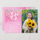 Foto Rosa Glitter 8:e födelsedagsinbjudan Girly Rosa Glitter 8:e födelsedagsfest inbjudan för en 8-årig flicka med modernt skrivmanus och fotopilballonger för roligt.
