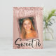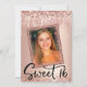 Få lite glamour till din tjej söt 16 födelsedagsfest med dessa söta tjejaktiga moderna och trendiga inbjudningar med rosa guld glitterdroppar, lägg till ett foto