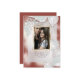 Lägg till ditt foto i en guldfärgad geometrisk fasetterad ram. Glänsande terrakotta-luminescerande bakgrund med lysande rosblad, eucalyptusblad, babysand och gnistrande stjärnor. Baksidan har en komplementär koordinerad färg. Denna design ser särskilt snygg ut på pappersvalet Pearl Shimmer. Anpassa text, typsnitt och storlek. Vi har skapat denna mall för att göra det enkelt för dig att anpassa den med din egen information. Detta är en del av en komplett bröllopspappersserie med matchande bröllop, baby shower och andra evenemangspapper. Originalkonst © av WhimsicalArtwork™.