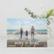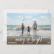 Glad, Ljus och Solig - rolig sätt att skicka hälsningar under semestern för alla ocean älskare! Denna fantasifulla och moderna tropiska design är perfekt för en varm jul eller minnen från semester. Anpassa bara era namn och familjefoto så har ni ert eget personliga kust julkort eller nyårskort!