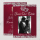 Den här romantiska designen har en elegant burgunderbakgrund med glittrande ramar, platshållare för parets foto och två silverhjärtan sammanflätade med datumet för evenemanget i elegant skrivstil på framsidan. Baksidan har en monogram-platshållare, ytterligare information och plats för din webbplats. Finns även med olika bakgrundsfärger för att matcha ditt bröllopps tema. (Glimmer är simulerat i konstverket). Designad för att samordna med "Two Shall Become One - Hearts, Doves & Glitter" brölloppskollektion. För att ändra detaljer, klicka på « Anpassa ». Ersätt foto med ditt eget. För att flytta texten eller ändra textstorlek, teckensnitt eller färg klickar du på «Klicka för att anpassa ytterligare»